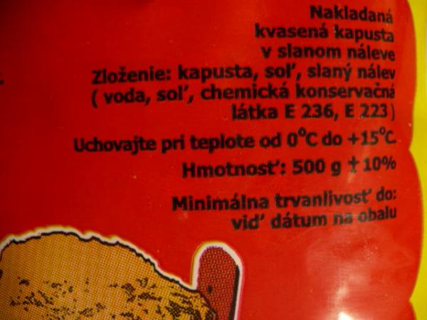 SZPI dnes vložila do Systému rychlého varování (RASFF) informaci o zjištění potraviny škodlivé pro zdraví Kysané zelí bílé ELTOM 500g, označené datem použitelnosti do 10. 07. 2012,  země původu: Polsko, výrobce: Gospodarstwo Rolno Warzywne, Ježówka  83a,  32-340 Wolbrom, Polsko. Výrobek nevyhověl z hlediska přítomnosti kyseliny mravenčí, která byla v odebraném vzorku zjištěna v množství 2116mg/kg. Potravina byla vyhodnocena jako nevhodná k lidské spotřebě z důvodu kontaminace cizorodou látkou, protože kyselina mravenčí není vyhláškou č. 4/2008 Sb. povolena.