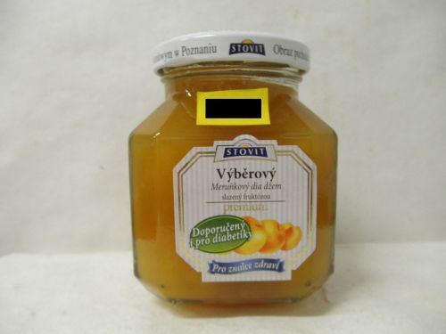 Výrobek STOVIT Výběrový Meruňkový dia džem Premium (220 g, DMT 06/05/2012, šarže L11 126) na tom nebyl o mnoho lépe. Zatímco polský výrobce uváděl padesátiprocentní podíl meruněk, reálně tvořily meruňky pouze 38,1% obsahu.