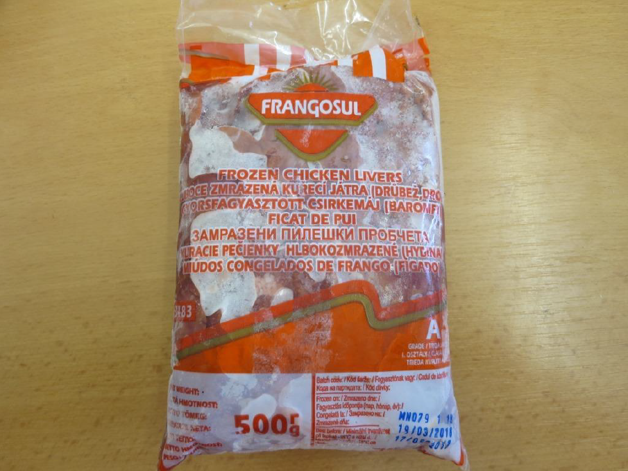 Státní zemědělská a potravinářská inspekce (SZPI) zjistila v tržní síti potravinu nevhodnou k lidské spotřebě, FRANGOSUL – HLUBOCE ZMRAŽENÁ KUŘECÍ JÁTRA. V odebraném vzorku se po rozmražení potvrdila kontaminace žlučníkem, částí žlučových cest a žlučovými šťávami.