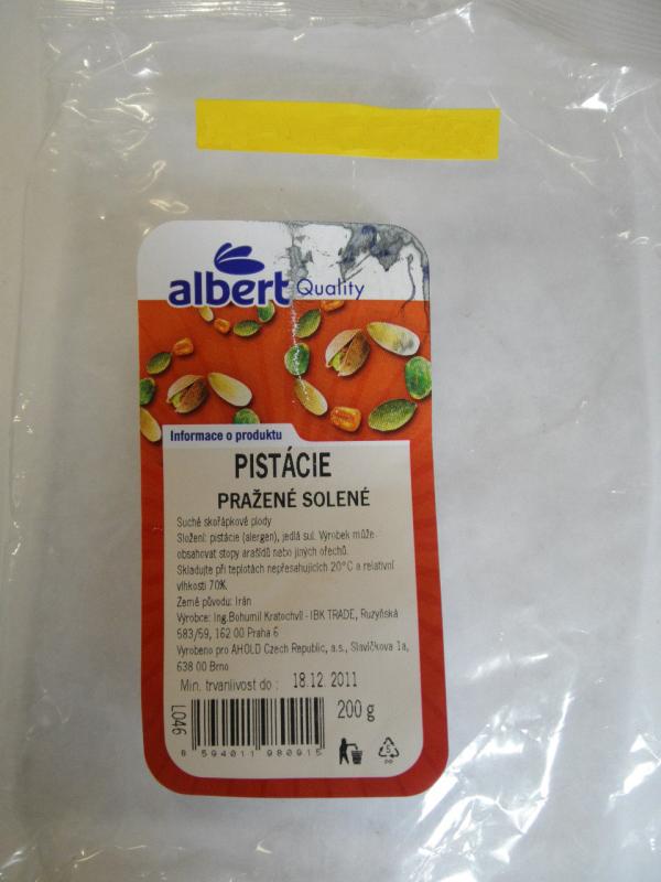 Výrobcem uvedené potraviny je firma IBK TRADE, která surovinu (původem z Íránu) nakoupila od firmy MB INDUSTRY s.r.o. Chrastava. Firma IBK TRADE dodala zpracované pistácie společnosti AHOLD Czech Republic, a.s. v množství 358,4 kg.