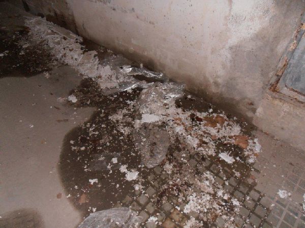 Při prověřování pětipatrové budovy našli inspektoři ve dvou patrech stopy po ohni, stěny a strop byly silně ohořelé, odlučovaly se z nich částečky ohořelé malby a zdiva. Ve všech patrech byly stopy po zatékání vody, ze stěn a stropů opadávalo zdivo. Podlahy byly zaneseny nečistotami a veškeré skladované potraviny byly silně zaprášené. V suterénu byly zjištěny stopy po hlodavcích. V budově chyběla umyvadla a také osvětlení, pohyb byl možný pouze s baterkou. Na stěnách byly zjištěny okem viditelné černé plísně.