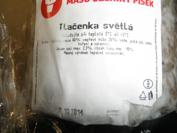 - Tlačenka světlá - etiketa byla v místech uvedení data použitelnosti odtržena.