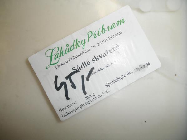 - Sádlo škvařené bal. á 500 g - na etiketě bylo odstraněno vyškrábáním datum použitelnosti,