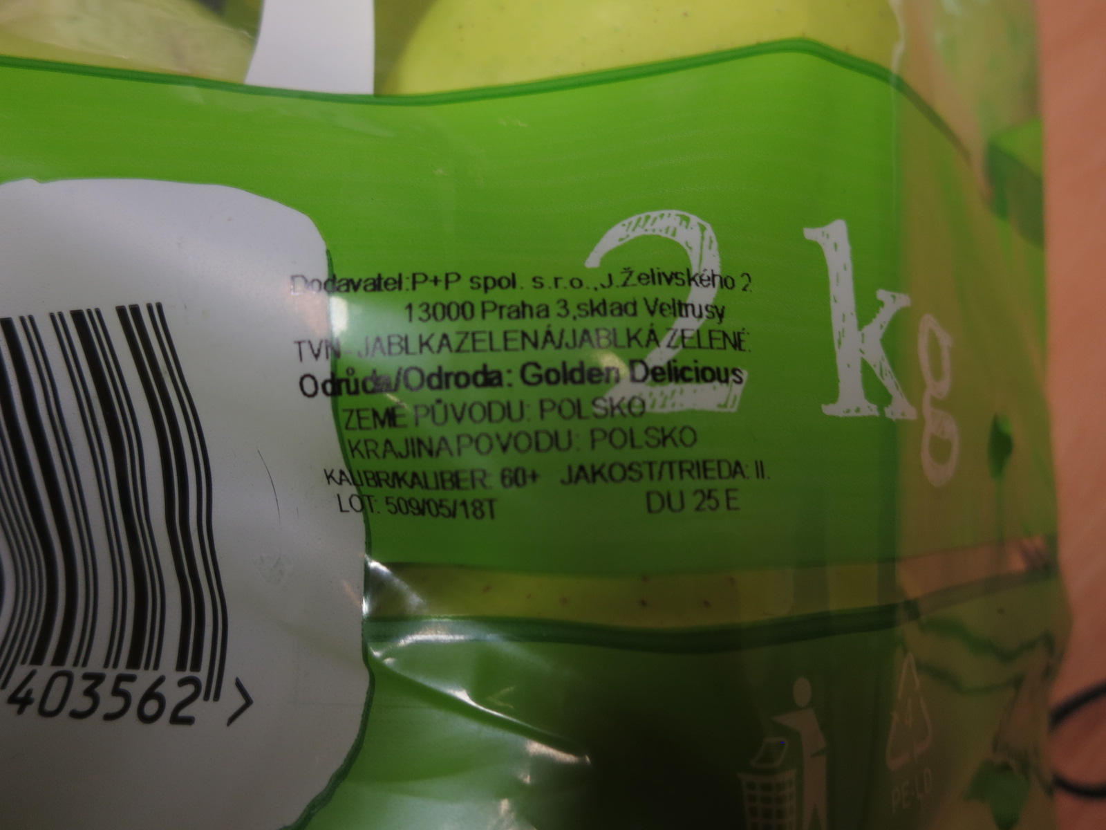 Výsledky z akreditované laboratoře SZPI aktuálně potvrdily nadlimitní přítomnost pesticidu bifenthrin v šarži Jablek zelených, odrůda Golden Delicious, v balení po 2 kg, označení šarže - LOT: 509/05/18T , země původu: Polsko. Na obalu byl vyznačen dodavatel potraviny P+P spol. s r.o., Praha. Nevyhovující vzorek inspektoři odebrali v provozovně společnosti Tesco Stores ČR a.s.