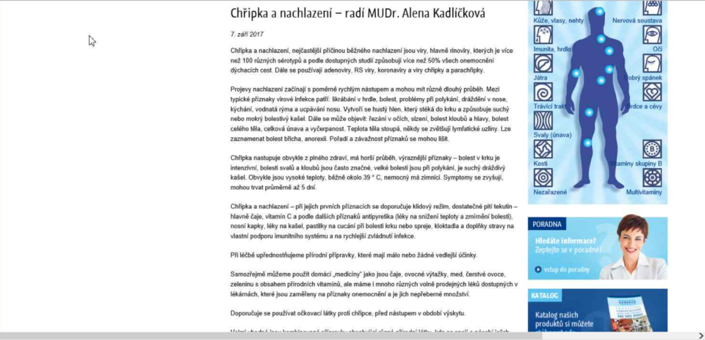 - Reklama na doplňky stravy na stránce www.generica-bohemia.cz, kontrolovaná osoba zde při nabídce doplňků stravy uváděla nepovolená léčebná tvrzení: „Chřipka, adenoviry, RS viry, koronaviry a viry chřipky a parachřipky atd…“. Kontrolovanou osobou je společnost Generica Bohemia spol. s r.o.
