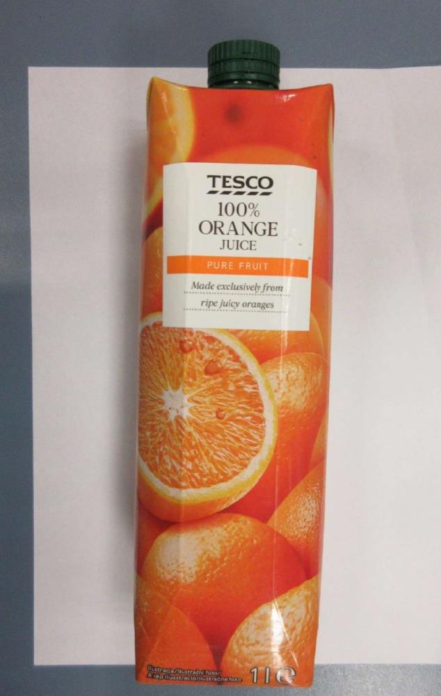 Státní zemědělská a potravinářská inspekce (SZPI) nařídila společnosti Tesco Stores ČR a.s., aby stáhla ze všech poboček nevyhovující potravinu TESCO 100% ORANGE JUICE, označení šarže: 1475466, datum minimální trvanlivosti: 07.09.2025, prodávající: Tesco Stores ČR a.s., Vršovická 1527/68b, 100 00 Praha 10.