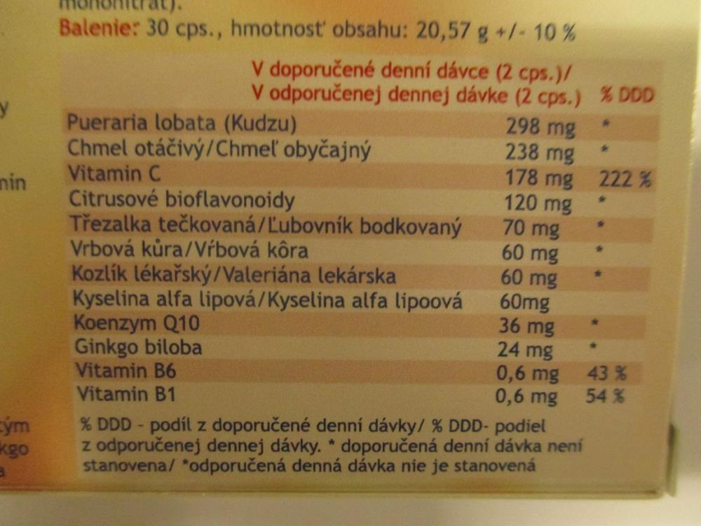 Na obalu ve složení potraviny bylo mj. uvedeno: (1.) „Vitamín C – 178mg / 2 kapsle“, laboratorní rozbor SZPI ale potvrdil pouze množství nižší než 1mg / 2 kapsle; (2.) „vitamín B1 – 0,6mg / 2 kapsle“, laboratorní rozbor SZPI ale potvrdil pouze množství nižší než 0,0114mg / 2 kapsle; (3.) „vitamín B6 – 0,6mg / 2 kapsle“, laboratorní rozbor SZPI ale potvrdil pouze množství nižší než 0,0076mg / 2 kapsle.