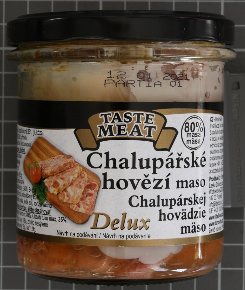 - Chalupářské hovězí maso Delux, datum minimální trvanlivosti do 12/01/2021, šarže 12 01 2021, výrobce neuveden, původ: Polsko. Na obalu konzervy výrobce deklaroval 80 g masa na 100 g výrobku, ale laboratorní analýza prokázala přítomnost 66,5 g/100 g. Vzorek inspektoři odebrali v provozovně MAKRO Cash & Carry ČR s.r.o., Místecká /280, Ostrava 720 00.