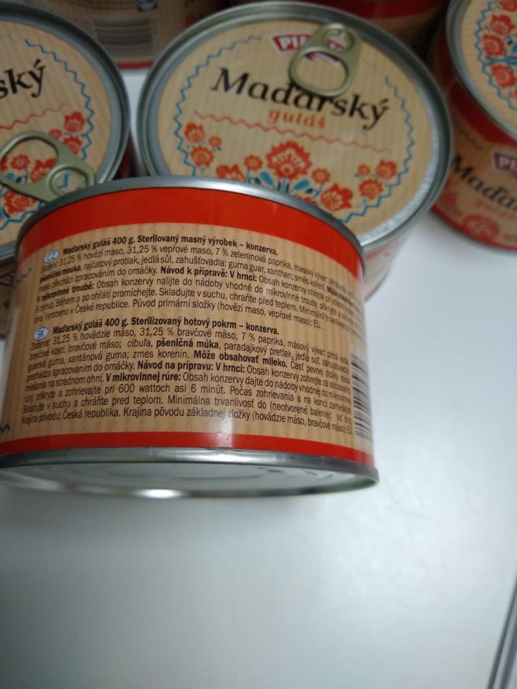 Inspektoři Státní zemědělské a potravinářské inspekce (SZPI) se pravidelně věnují kontrolám jakosti potravin v tržní síti a aktuálně zakázali šarži Maďarského guláše v konzervě s obsahem masa o 12,2 % nižším, než bylo uvedeno na etiketě.