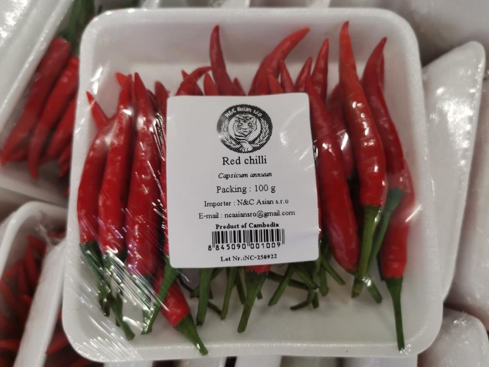 Jedná se o potravinu RED CHILLI, označení šarže: Lot Nr.:NC250922, dovozce: N&C Asian s.r.o., Baarova 66/13, Praha 140 00, Česká republika, země původu: Kambodža.