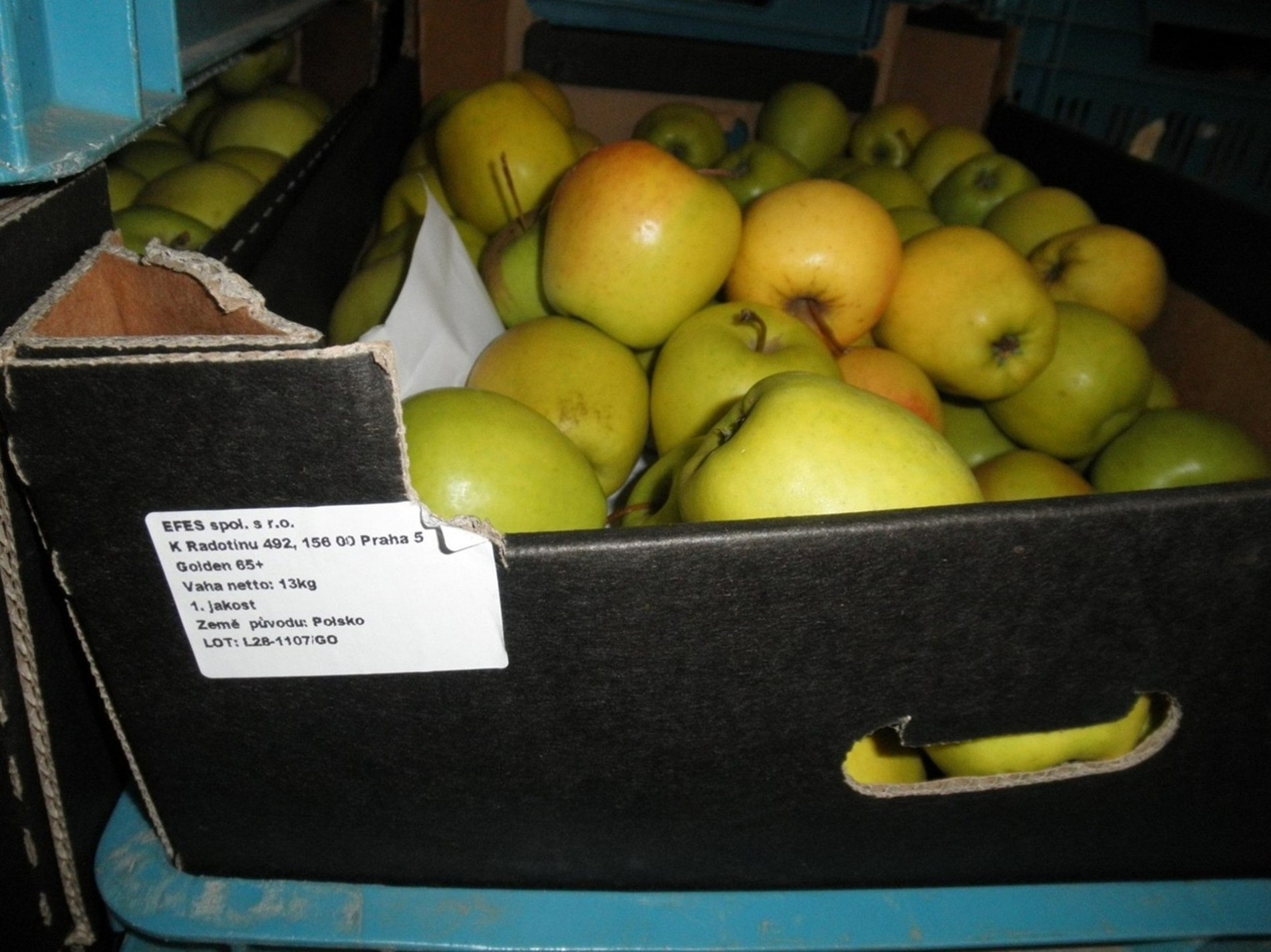 Nevyhovující šarži dovezla do ČR společnost EFES, spol. s r.o., Praha 5 a do tuzemské tržní sítě uvolnila přes další subjekty téměř 7,5 tuny těchto jablek. Dodavatelem na polské straně je společnost P.P.H. “EWA-BIS“ Sp. z o.o., 02-233 Warszawa, Serwitufy.