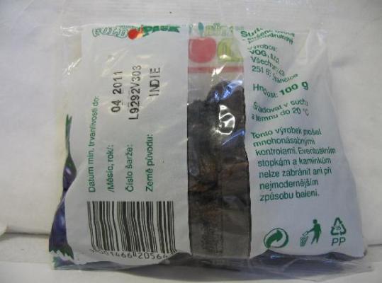 V prvním případě se jednalo o balené rozinky (Sultánky - sušené ovoce jednodruhové, á 100 g, země původu Indie, datum minimální trvanlivosti 04 2011, šarže L9292V303 a L9293V303, výrobce VOG, s.r.o., Strančice). Zabalené rozinky byly distribuovány v množství 3 315 kilogramů, tj. 33 150 spotřebitelských balení. Na základě opatření uloženého SZPI bylo z trhu staženo 406 balení. Zbytek byl již rozprodán.
