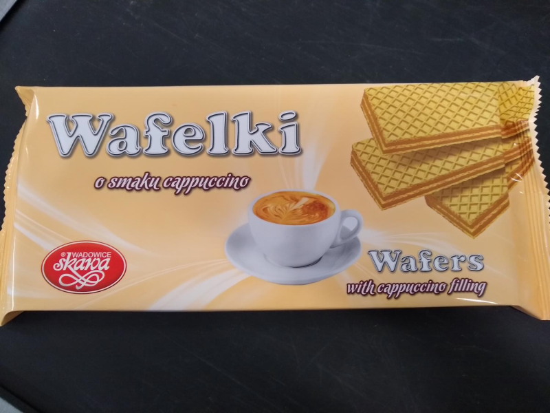 Wafelki o smaku cappuccino, označení DMT: 10.10.2019, šarže: 10.10.2019 3, výrobce: Zaklady Produkcji Cukierniczego „SKAWA“ S.A., ul.dr. Putka 1, 34-100 Wadowice, Polska, Vyrobeno v Polsku, Polsko. Laboratorní rozbor potvrdil v potravině přítomnost alergenu arašídy v množství 132 mg/kg. Výrobce na obal mj. uvedl: „Může obsahovat arašídy“, uvedené množství ale několikanásobně překračuje množství uznatelné jako stopy arašídů. Inspektoři vzorek odebrali v provozovně společnosti KEVIN HOANG s.r.o., Libušská 319/126, Praha 14200.