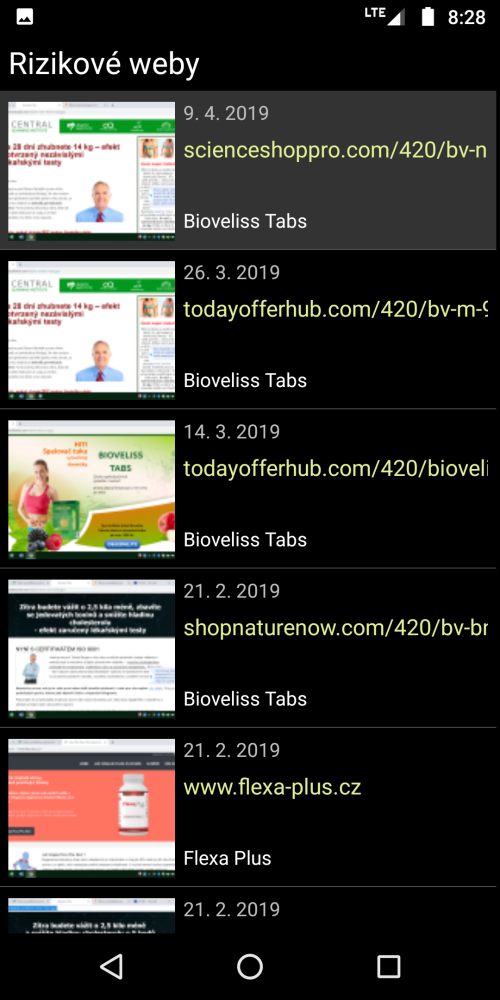 U každého z webů na seznamu jsou po jejich rozkliknutí k dispozici následující informace: