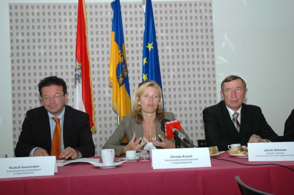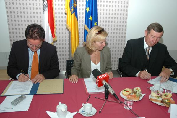 Ústřední ředitel Státní zemědělské a potravinářské inspekce (SZPI) Jakub Šebesta, ministryně zemské vlády Dolního Rakouska Christa Kranzl a ministr zemské vlády Horního Rakouska Rudolf Anschober včera v St.Pőltenu podepsali smlouvu o spolupráci v rámci projektu iniciativy  INTERREG IIIA.