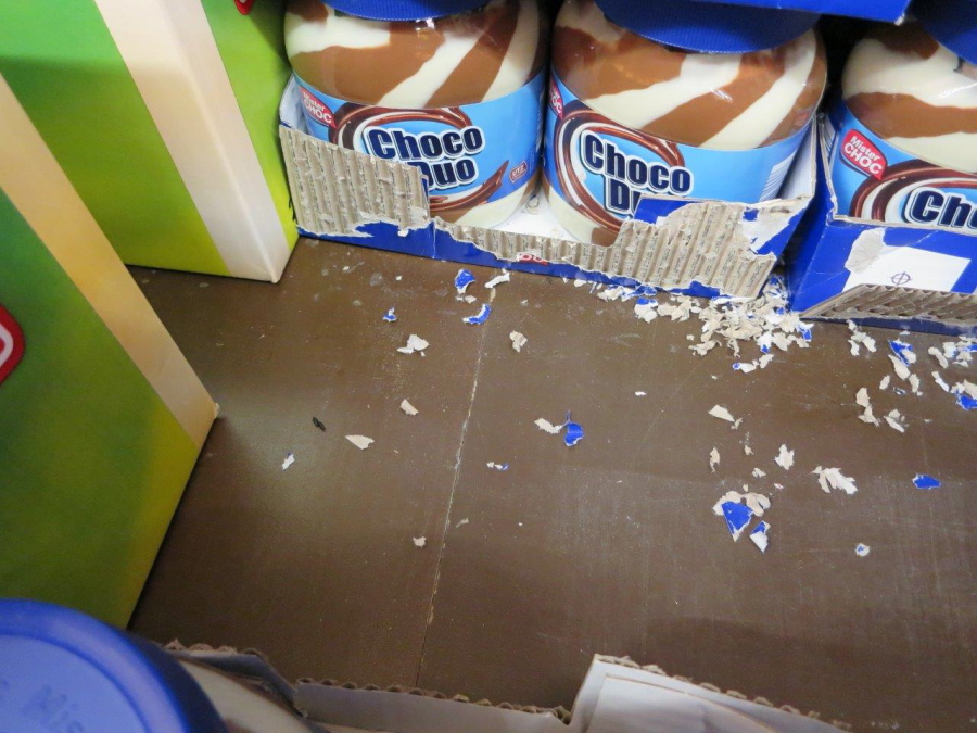 Zjištěná pochybení svědčila o porušení elementárních hygienických předpisů. V prodejně se vyskytovalo množství trusu škůdců a to zejména v regálech mezi potravinami. Papírové krabice s potravinami byly značně poškozené požerem hlodavců. Dále inspektoři zjistili výskyt trusu hlodavců v zázemí, kde prodejce skladoval potraviny. Z celkové situace bylo patrné, že provozovatel nezabezpečil prodejnu před pronikáním hlodavců a nepřijal adekvátní opatření na jejich eliminaci. Ve skladu inspektoři zjistili nečistoty a prach a stav provozovny neumožňoval bezpečné uvádění potravin do oběhu.