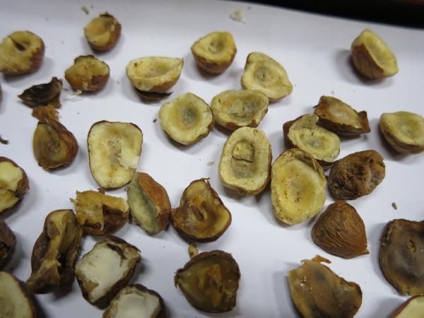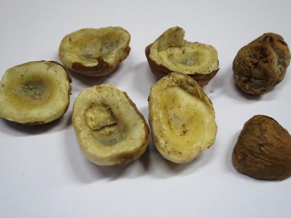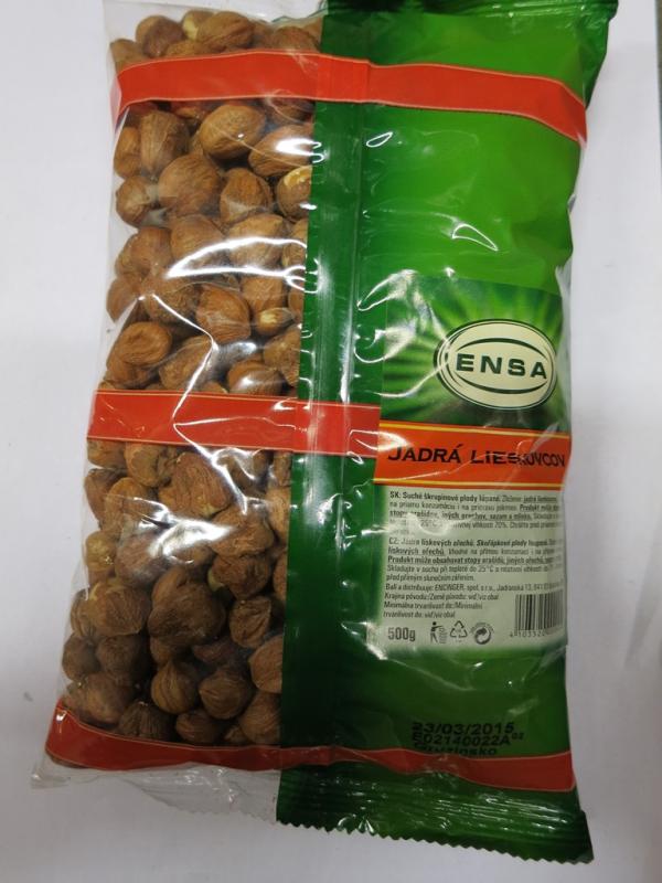 - Jádra lískových ořechů á 500 g, označené šarží: E02140022A, DMT: 23/03/2015, od výrobce: ENCINGER, spol. s r.o., Bratislava, země původu: Gruzie. U všech kontrolovaných balení dané šarže byla senzorickým hodnocením zjištěna kontaminace plísní napadených jader a to v poměru 15% na balení.