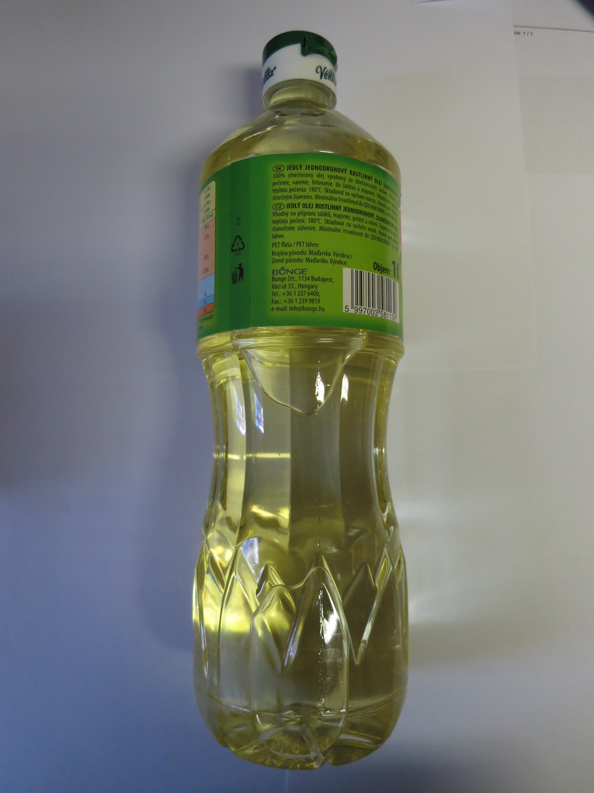 Olej SZPI odebrala v distribuční síti společnosti AHOLD Czech Republic a.s., byl označen datem minimální trvanlivosti do 10. 06. 2017 a jeho výrobcem a dovozcem byla společnost Bunge Zrt., 1134 Budapest, Váci út 33., Maďarsko.