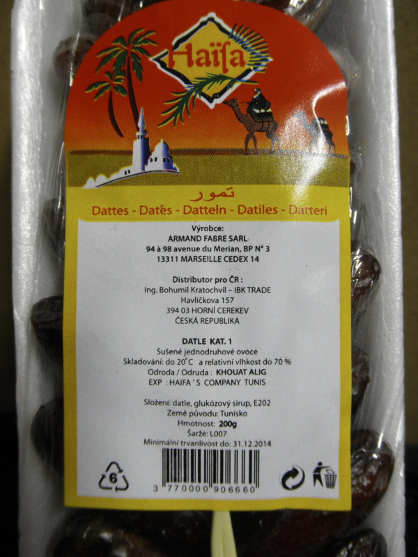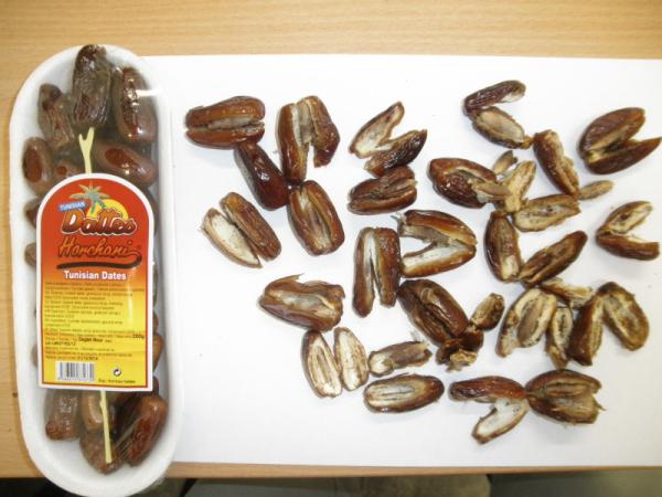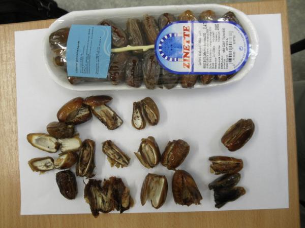 Jedná se o čtyři šarže sušených datlí, kde inspekce po otevření balení zjistila přítomnost mrtvých larev a brouků v plodech a stop jejich působení, zejména požeru a exkrementů. Závadné šarže inspekce zjistila v provozovnách společnosti Tesco Stores ČR, a. s. na Nádražní ulici v Kdyni a Domažlické ulici v Klatovech a dále v provozovně společnosti ČEROZFRUCHT s.r.o. v ulici Na Jíkalce v Plzni. Potraviny napadené škůdci nelze považovat za bezpečné a proto SZPI v souladu s Nařízením (ES) 178/2002 Sb. nařídila provozovatelům, aby neprodleně stáhli předmětné šarže ze své tržní sítě. Dále inspekce zjistila a zakázala uvádět do oběhu sedm šarží suchých skořápkových plodů. Jedná se o dvě šarže vlašských ořechů ve skořápce, které nabízela provozovna společnosti Globus ČR, k. s. v Chotíkově. SZPI zde v jádrech plodů zjistila stopy činnosti škůdců, zejména požer a pavučinky, jádra byla rovněž napadená plísní a byla nepřirozeně seschlá a tmavá. Obdobné závady vykazovala i jedna šarže vlašských ořechů v nabídce provozovny společnosti Kaufland Česká republika v.o.s. na Pivovarské ulici v Domažlicích. Jedlé kaštany se zaplesnivělými plody SZPI zjistila v provozovně společnosti Ahold Czech Republic, a. s. na Gerské ulici v Plzni a v už jmenované prodejně Globus v Chotíkově. Podrobnosti a další zjištění inspekce viz tabulka níže.