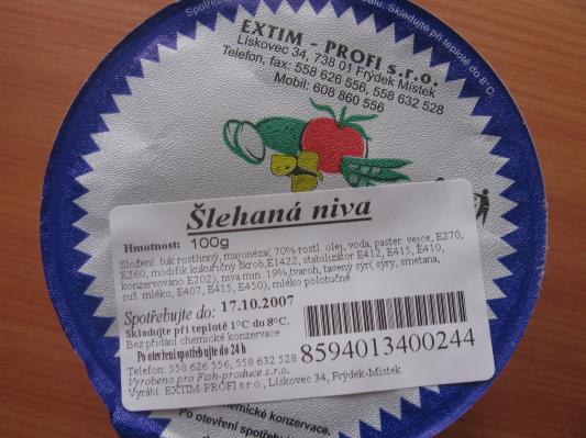 Státní zemědělská a potravinářská inspekce (SZPI) zakázala výrobu potravin studené kuchyně v provozovně Extim Profi, s.r.o., Lískovec 34 ve Frýdku-Místku, neboť laboratorní testy prokázaly u Šlehané nivy v balení 100 g s datem použitelnosti do 17. 10. 2007 nadlimitní výskyt bakterie Listeria monocytogenes. Firma Extim Profi vyrobila dvanáct kilogramů této potraviny.