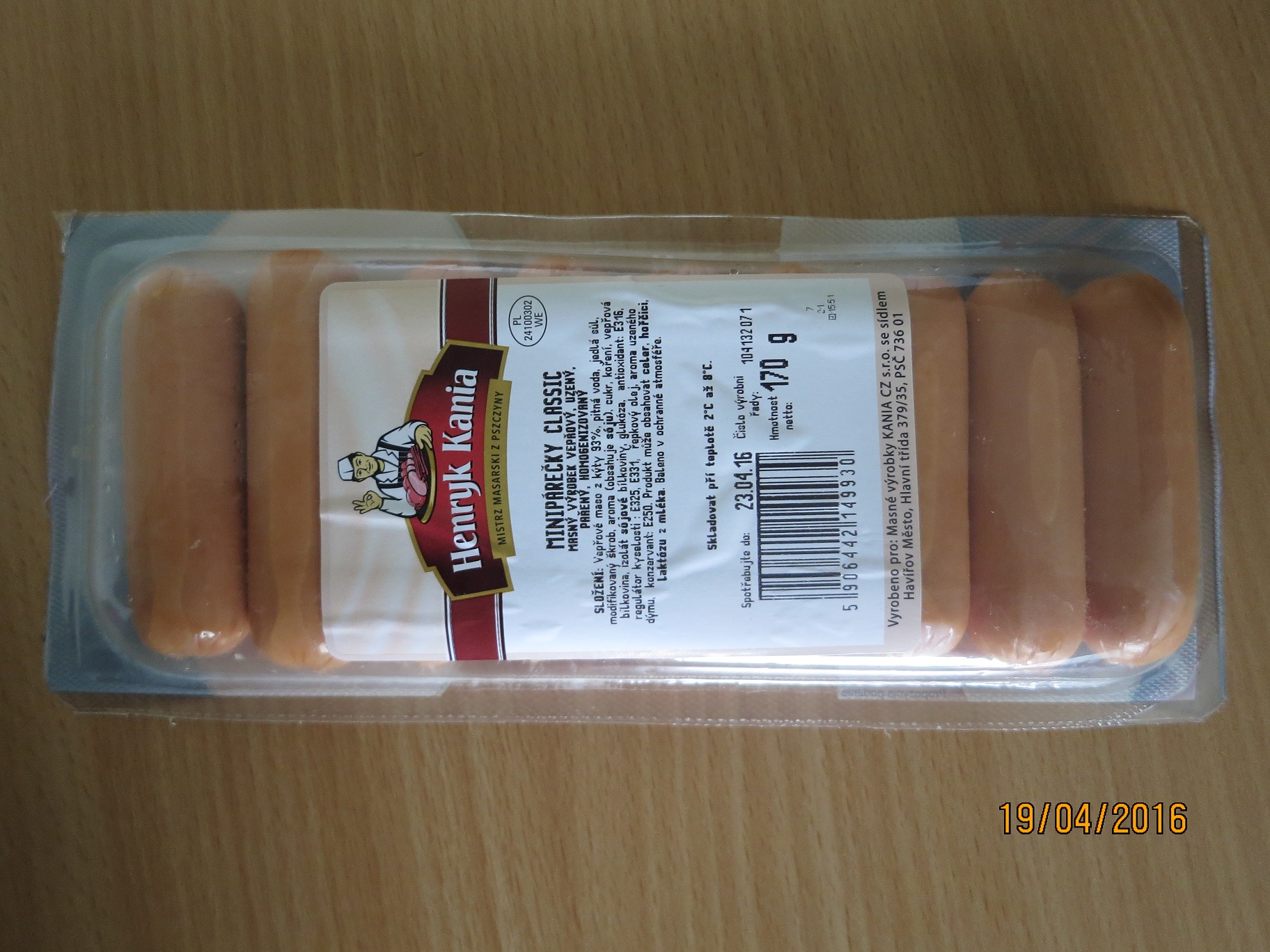 MINIPÁREČKY CLASSIC, Henryk Kania – MISTRZ MASARSKI Z PSZCZYNY v balení 170 g, dp: 23. 4. 2016, šarže: 104132071, vyrobeno pro: Masné výrobky KANIA CZ s.r.o., země původu: Polsko. Výrobce na obalu mj. uvedl: „Složení: Vepřové maso z kýty 93%, …“, laboratorní rozbor dusíkovou metodou ale prokázal přítomnost masa pouze v hodnotě 78,2% a uvedením nepravdivého údaje došlo ke klamání spotřebitele. Nevyhovující vzorek inspekce odebrala v provozovně společnosti Tesco  Stores ČR a.s.