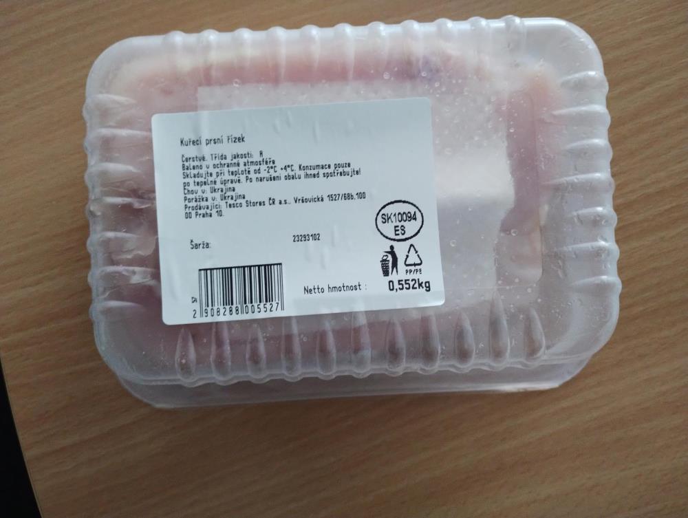 Státní zemědělská a potravinářská inspekce (SZPI) varuje spotřebitele před nebezpečnou potravinou TESCO KUŘECÍ PRSNÍ ŘÍZEK, šarže: 23293102, chov a porážka: Ukrajina, dle veterinárního identifikačního označení (SK 10094 ES) baleno společností WE Trade s.r.o., Hlavná 1088, 92503 Horné Saliby, Slovensko. Inspektoři vzorek odebrali v provozovně Tesco Stores ČR a.s., Rudolická 1706/4, 434 01 Most.