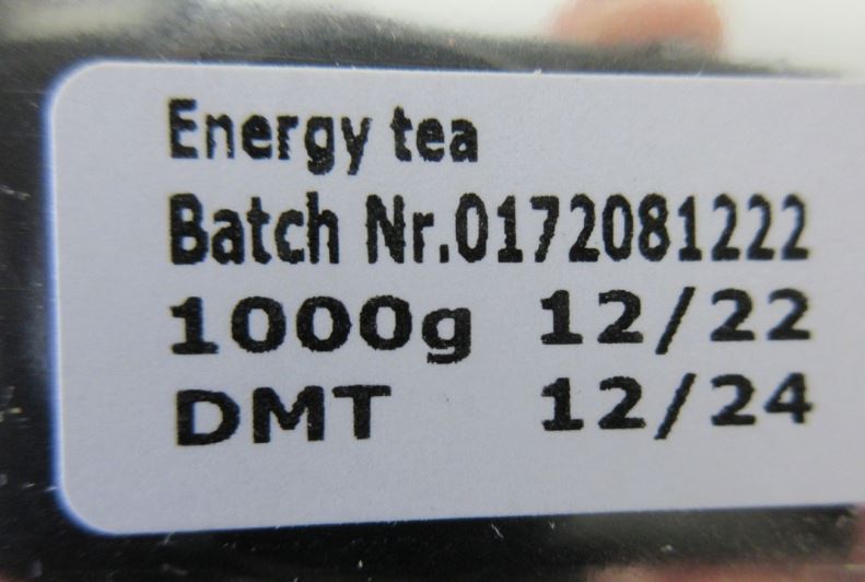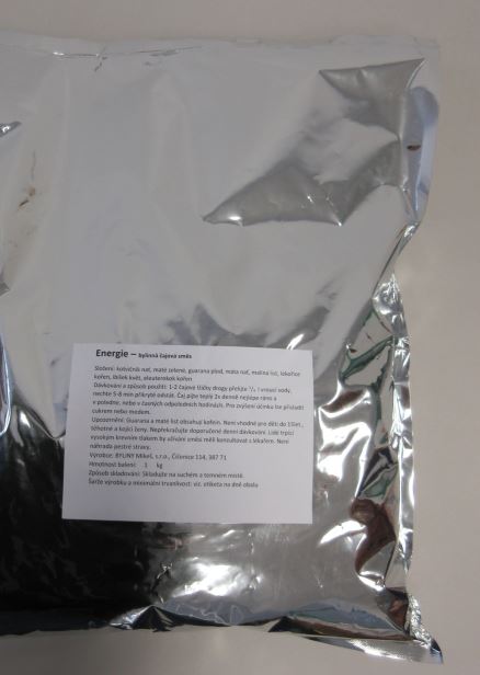 Potravina je označena: Energie – bylinná čajová směs, balení 1 kg, datum minimální trvanlivosti: 12/24, označení šarže: „Batch Nr. 0172081222“, výrobce: BYLINY Mikeš s.r.o., Číčenice 114, 387 71 Číčenice.