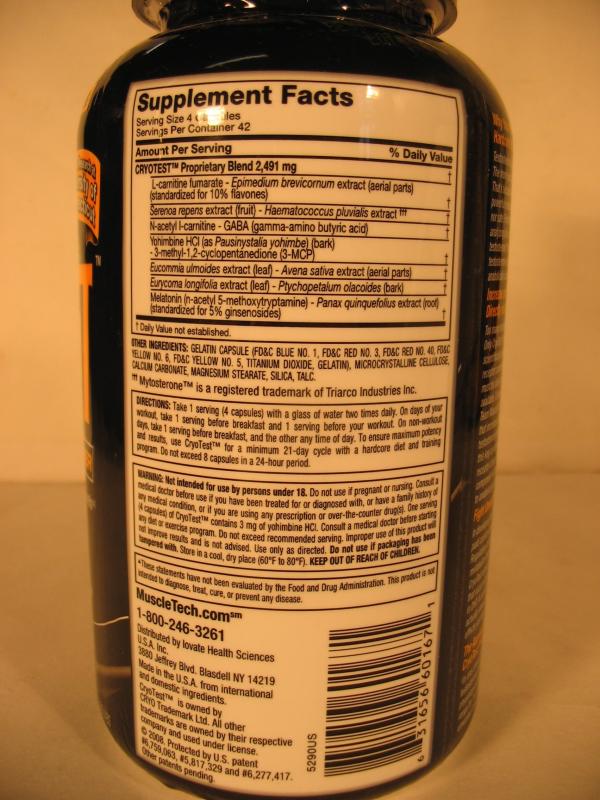 Státní zemědělská a potravinářská inspekce řešila další případ nebezpečného přípravku určeného pro sportovce. Jedná se o výrobek Muscletech Cryotest (datum minimální trvanlivosti 03/2011, balení 168 kapslí) pocházející z USA. Do České republiky jej přes Polsko dovezla a zde distribuovala společnost Redam s r.o. ze Smržic.