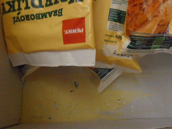 Myší trus SZPI identifikovala na regálech mezi potravinami, v zázemí provozovny inspekce zjistila kromě exkrementů také množství prodejcem vyřazeného zboží se zjevnými známkami myšího požeru a rozkousané obaly potravin. Ve skladu se nacházelo i několik beden se zbožím určeným k likvidaci – jednalo se o oblečení, boty, drogistické zboží, hračky apod. – kde inspekce zjistila zmíněné hnízdo s myšími dospělci a mláďaty.