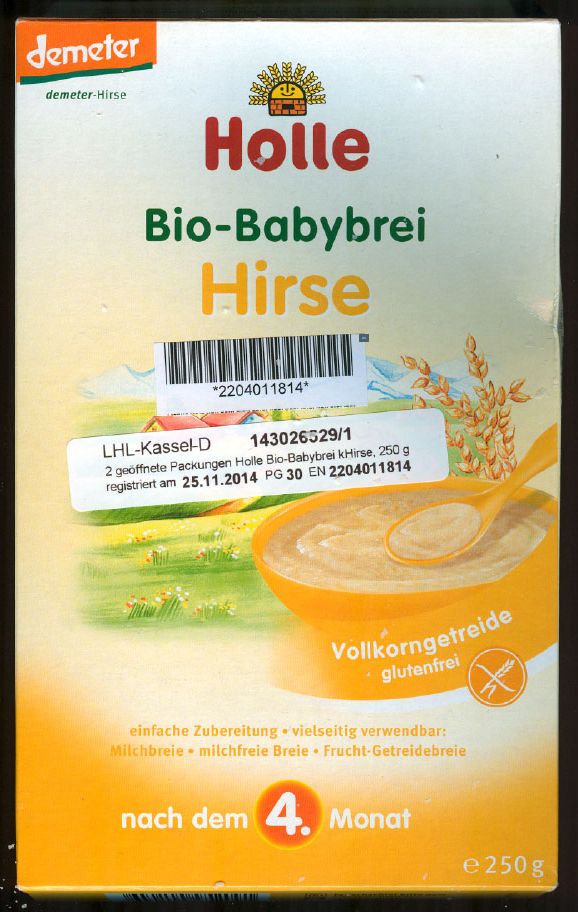 Státní zemědělská a potravinářská inspekce (SZPI) aktuálně obdržela informaci prostřednictvím systému rychlého varování pro potraviny a krmiva (RASFF) o rizikové potravině bio dětská výživa s jáhly, jablky a hruškami Holle Bio-Babybrei Hirse v balení 250g, šarže P14/05337. Dle informace kontaktního místa RASFF v Německu analýza v potravině potvrdila přítomnost atropinu v koncentraci 3,73 mikrogramů na kilogram. Dle předběžné informace se do ČR dostala zásilka o velikosti 1,5 kg., inspekce aktuálně prověřuje distribuční toky a situací se zabývá. SZPI doporučuje všem spotřebitelům, aby potravinu nekonzumovali.