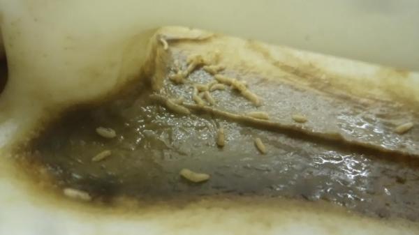 Na sebe naskládané kanystry s cibulkami se v kontejneru vlastní vahou zdeformovaly a ve vyteklém obsahu inspekce zjistila přítomnost hmyzu v různých vývojových stádiích – larvy, kukly – a částečně i plíseň. Vzhledem k poškození obalů nebylo možné vyloučit kontaminaci obsahu kanystrů a proto SZPI nevpustila celou zásilku nakládaných cibulek do volného oběhu. Nevyhovující potravina, která mohla směřovat např. do provozoven společného stravování, se tak nedostala ke spotřebiteli.