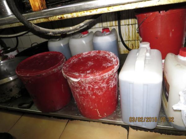 Čínská restaurace a bistro Li de (kontrolovaná osoba YE LI JUN s.r.o.) na Bozděchově ul č. 637/9 v Praze 5. Inspekce v provozovně rychlého občerstvení nabízející cca 90 druhů pokrmů zjistila suroviny uložené v silně znečištěných obalech a sporáky, digestoře pro odtah par a okolní stěny silně znečištěné vrstvami mastných nečistot. Dále provozovatel dlouhodobě neudržoval v čistotě skladové prostory a v kuchyni nebyla k dispozici teplá tekoucí voda.