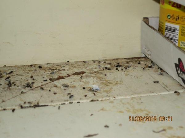 Hospoda u Vzducholodě (kontrolovaná osoba: Josef Pavlíček), Floriánské náměstí 441/5, 796 01 Prostějov. Podlaha v kuchyni, včetně regálů, vykazovala v době kontroly silné znečištění zašlou špínou, která svědčila o nedostatečně prováděné hygienické praxi. Na podlaze v kuchyňce se u stěn dokonce vyskytoval myší trus. Taktéž podlaha pod výčepem byla silně znečištěna prachem, nečistotami a pavučinami.