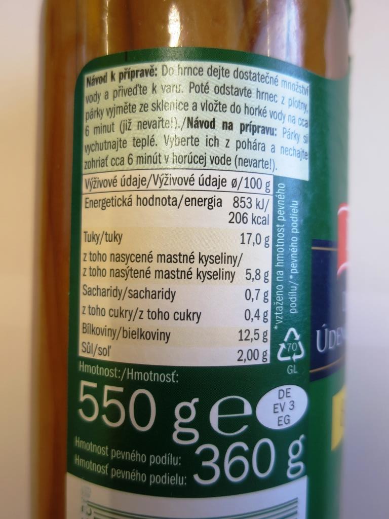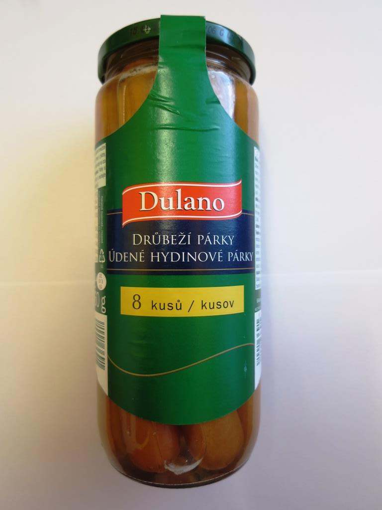 Dulano drůběží párky, s označením data minimální trvanlivosti do 15. 1. 2018, šarže 15. 01. 2018, výrobce Böklunder, Gewerbestrasse 1, D-24860 Böklund, Německo. Výrobce na obalu uvedl obsah masa v hodnotě 70%, laboratorní analýza však stanovila přítomnost 60,3% masa. Výrobek se nacházel v distribuci společnosti Lidl Česká republika v.o.s.