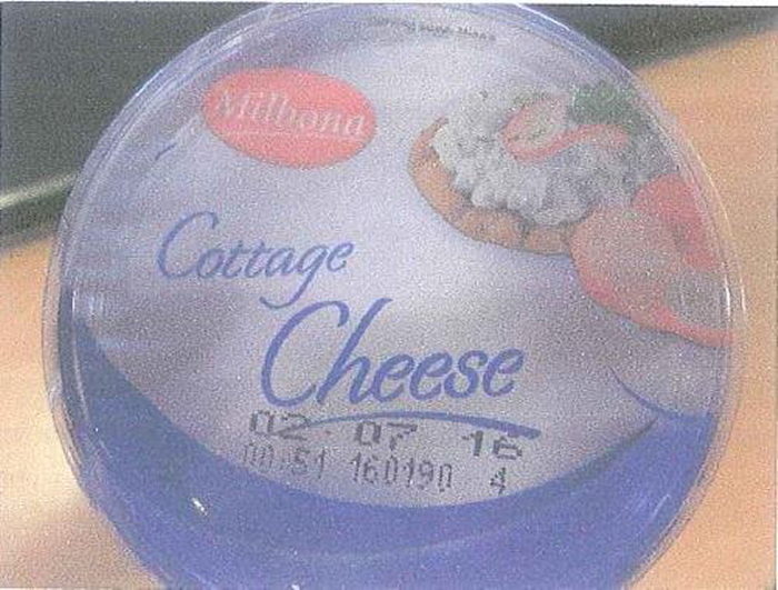 Milbona Cottage Cheese s označením šarže 1601904, výrobce: Privatmolkerei Bechtel, Molkereistrase 5, D-92521 Schwarzenfeld, země původu: Německo. Výrobce na obal uvedl: tuk v sušine 20%, laboratorní analýza ale potvrdila obsah tuku v sušině pouze v hodnotě 18,1%. Výrobek inspekce odebrala v distribuci společnosti Lidl Česká republika v.o.s.