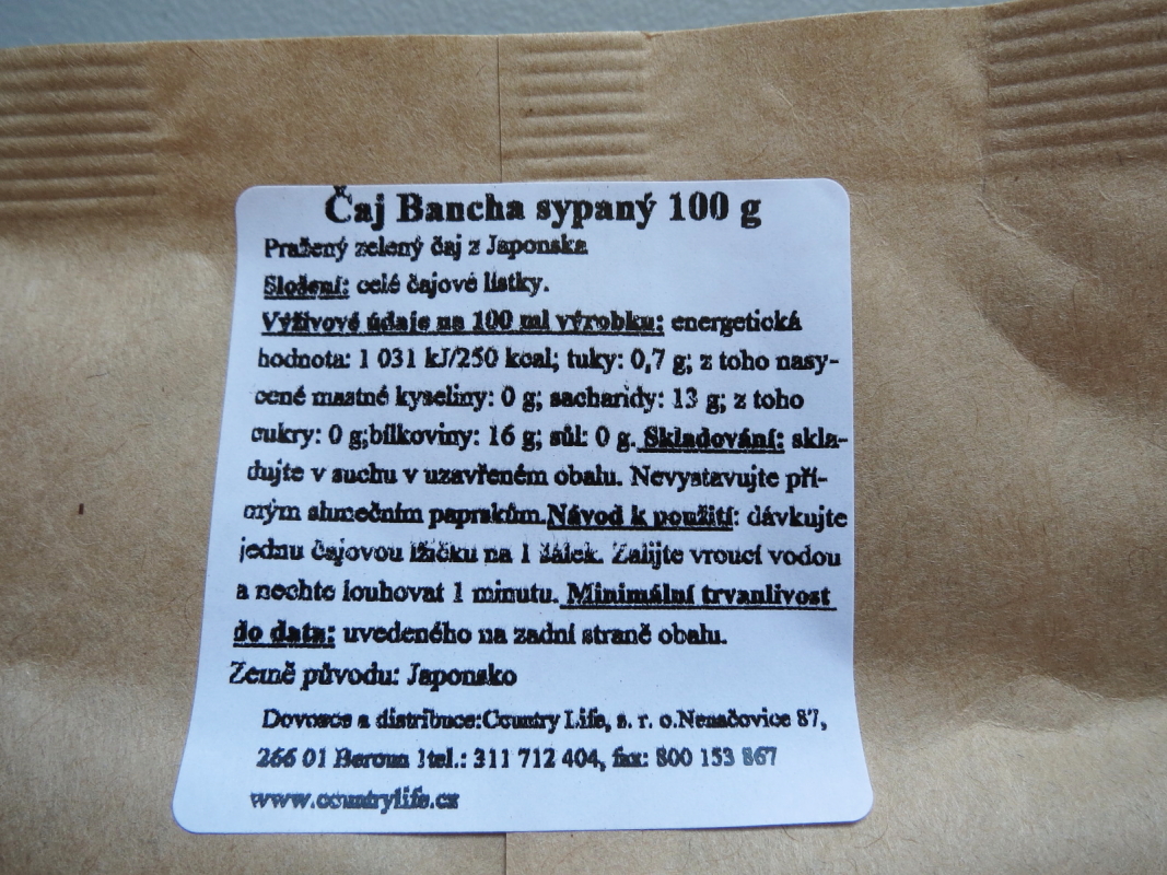 Státní zemědělská a potravinářská inspekce (SZPI) nařídila dovozci a distributorovi čajů, společnosti COUNTRY LIFE s.r.o., Nenačovice 87, PSČ 26601, aby neprodleně stáhl od všech svých odběratelů a ze všech svých poboček nevyhovující šarži japonského sypaného čaje HIRA BANCHA / Čaj Bancha sypaný, v balení 100 g, DMT 17. 6. 2018 a 20. 1. 2019, dodavatel: MUSO Co. Ltd., 3-7-22, NISHITENMA, KITA-KU, OSAKA 530-0047, Japonsko.