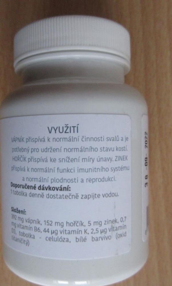 Within an inspection of Internet sale, the Czech Agriculture and Food Inspection Authority (CAFIA) detected non-compliant food supplement Univitalis Vápník Horčík Zinek+ (Univitalis Calcium Magnesium Zinc+) in a plastic container containing 100 capsules, best before date by 30th September 2022, producer: Unistry s.r.o.