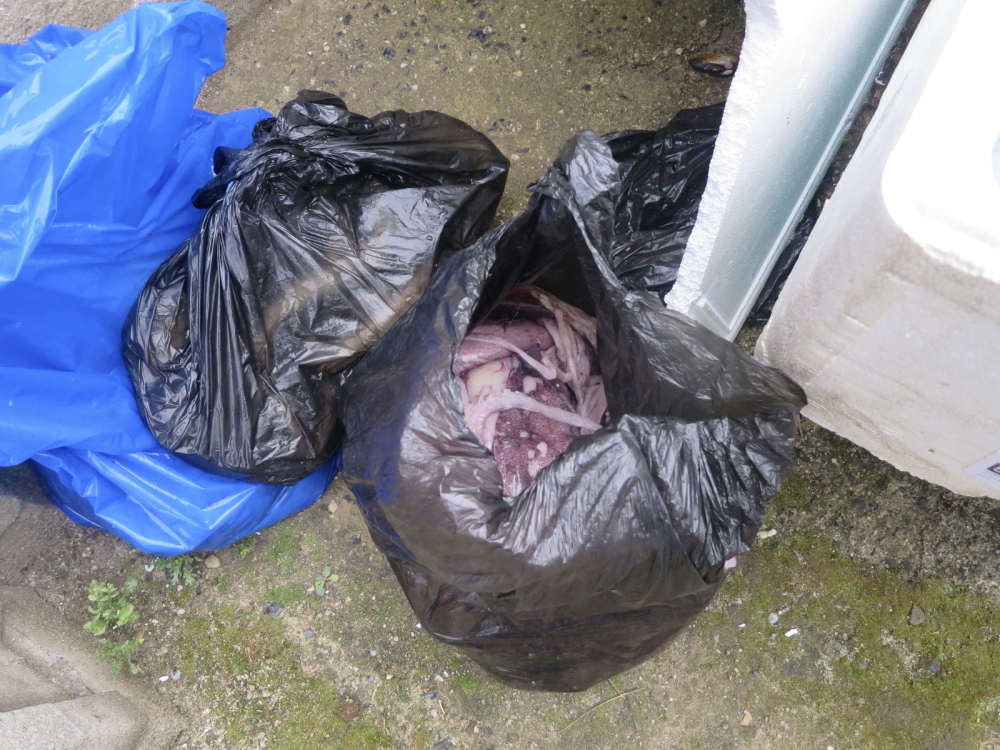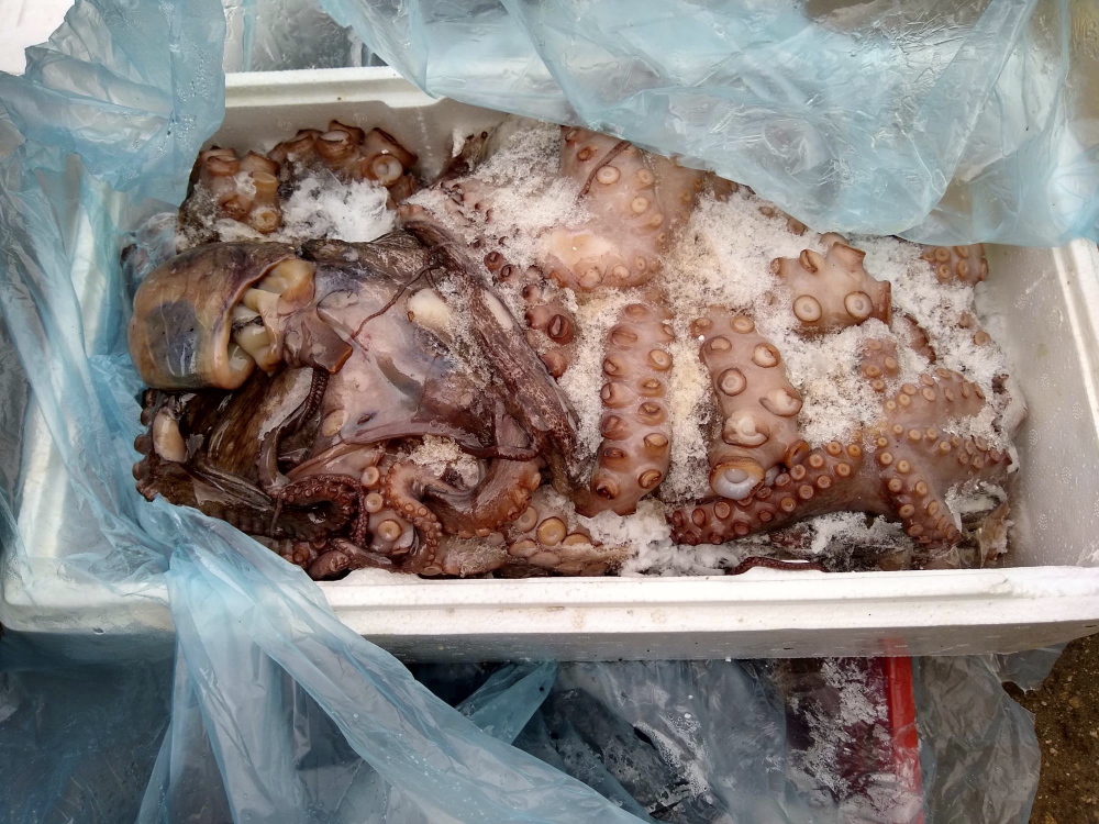 The inspectors found more than 400 kg of sea animals both in living and slaughtered state. Various sorts of sea fish, octopuses, cuttlefish, crabs, oysters and further animals were stored under utterly unsatisfactory conditions – they were unpacked and freely stored in the yard of the premises in carriers, plastic bags and polystyrene or wooden boxes. The goods were totally unprotected against surroundings’ effects. Storage conditions thus failed to ensure safety of stored animals and foodstuffs, in particular with regard to the risk of contamination from the surroundings and growth of microorganisms.