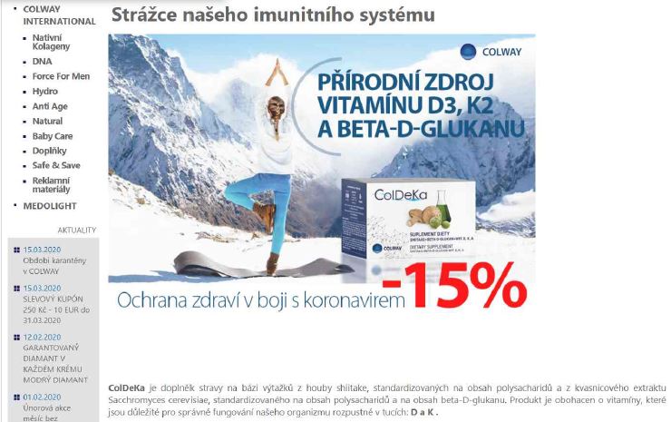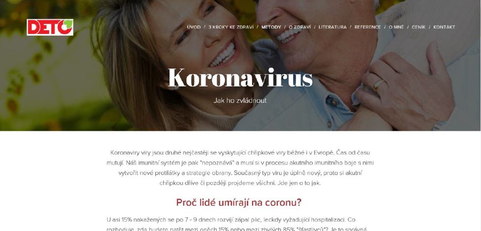 Offer of food supplements on www.detoxikace-deto.cz, the inspected person released here, inter alia, article “Coronavirus and how to manage it.” Using this information in relation with the offer of food supplements is regarded as a prohibited medical claim. Entity OLGA CHMUROVIČOVÁ, street 1. máje 519/23, Břeclav 691 41 is the inspected person.