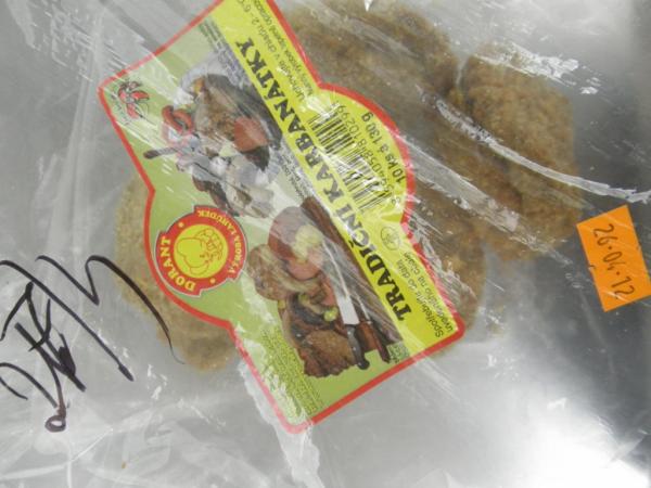 Pork mini sausages (producer CZ 6005 ES, supplier M. Karlík - distribuce s.r.o., Husova 735, Vysoké Mýto),