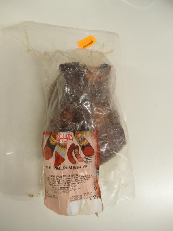 Foodstuff was assessed as unfit for human consumption as the package was inflated and white mucus and tiny white colonies of microorganisms were visible on the surface after opening; atypical acidulous smell was detected as well.