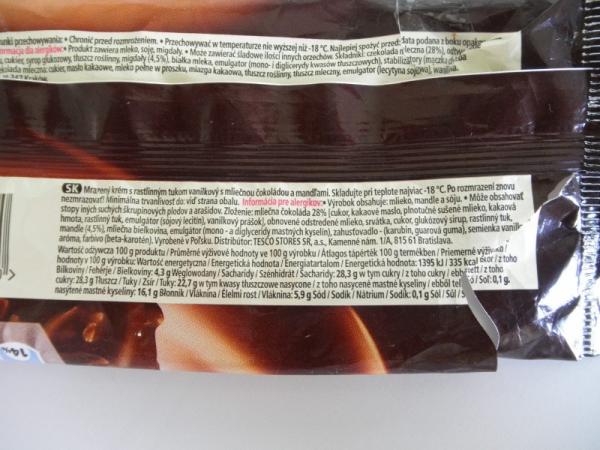 The Inspection Authority ordered Tesco Stores ČR a.s. company to withdraw product TESCO Almond frozen cream with vegetable oil, vanilla with milk chocolate and almonds, 120 ml, best-before 6/28/2013. Supplier: KILARGO SP. Z O.O., CHECH ȽO PIERWSZE, TOROWA ST. 13, 95-082 DOBROŇ, POLAND, Made for TESCO/POLSKA/ Sp. z o.o., Kapelanka st. 56, 30-347 Kraków, Poland from circulation.