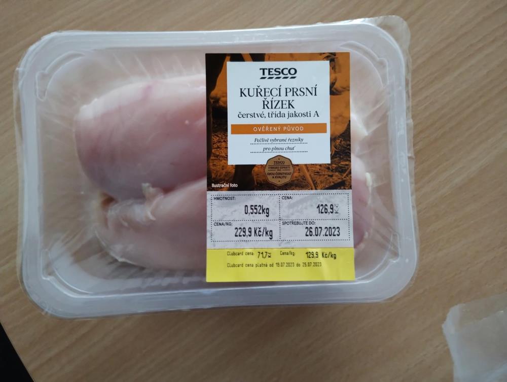 The Czech Agriculture and Food Inspection Authority (CAFIA) warns consumers of unsafe foodstuff TESCO CHICKEN PRSNÍ ŘÍZEK (chicken breast meat), lot: 23293102, bred and slaughtered: the Ukraine, pursuant to the veterinary identification stamp (SK 10094 ES) packaged by WE Trade s.r.o., Hlavná 1088, 92503 Horné Saliby, Slovakia. The inspectors took the sample at the premises of Tesco Stores ČR a.s., Rudolická 1706/4, 434 01 Most.