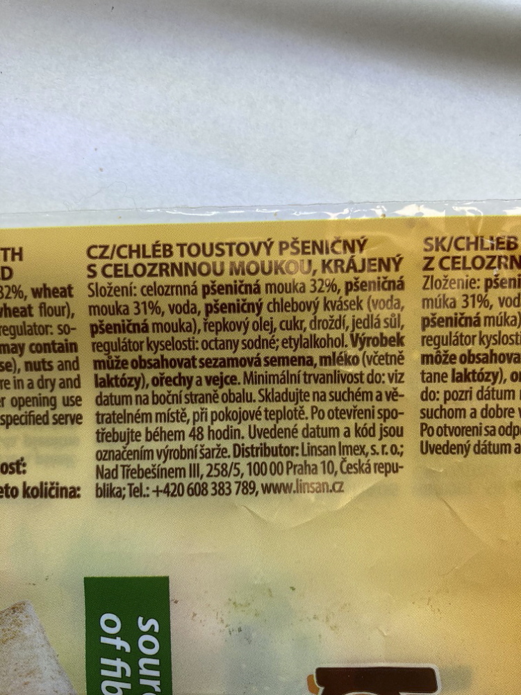 The Czech Agriculture and Food Inspection Authority (CAFIA) warns consumers against following unsafe food lot: DAN CAKE Toast bread wholegrain – sliced toast bread (wheat with whole grain flour), packaged à 500g, best before date by: 20.03.2021, producer: Dan Cake Polonia Sp. z o.o., ul. Transportowców 15, 32-500 Chrzanów, Poland.